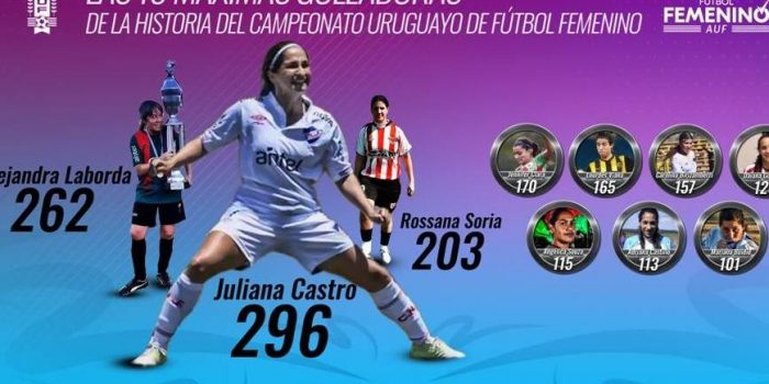 La delantera Juliana Castro es la máxima goleadora en la historia del Campeonato Uruguayo. Anotó 296 goles, comenzó su carrera en Inau en 2008 donde marcó 25 tantos. Después tuvo un pasaje por River Plate (80 anotaciones), Artigas de Sauce (16), Rampla Jrs (71) y Nacional (105).  Con 29 años para la venidera temporada defenderá a su sexto equipo en el país, Defensor Sporting Club.