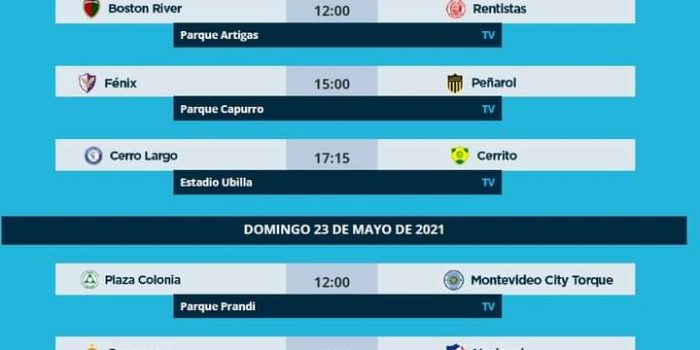 22.05.2021. Fútbol Uruguayo – Comienza hoy la segunda fecha del Torneo Apertura.